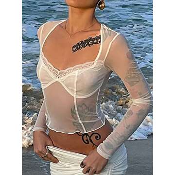 Show moreIntroducing the stunning Avanova Women's Sexy Scoop Neck Sheer Mesh Long Sleeve Lace Patchwork T Shirt Top, a captivating addition to your wardrobe that's perfect for making a bold statement. This exquisite top is designed with elegance and allure in mind, featuring a delicately crafted scoop neck that accentuates your neckline and long sleeves that provide an effortlessly chic look. The sheer mesh fabric is beautifully complemented by intricate lace patchwork details, offering a blend of sophistication and sultriness that can transition seamlessly from day to night. You'll love how lightweight and breathable it feels, making it an ideal choice for those warmer days while still providing a touch of coverage. Available in a crisp white hue, this top pairs beautifully with a variety of bottoms, allowing for endless styling possibilities. Whether you’re heading out for cocktails with friends or a cozy dinner date, this top promises to deliver that effortlessly stylish vibe you crave.