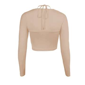 Avanova Women Sexy Long Sleeve Cut Out Crop Top Halter Going Out Criss Cross Shirts Beige Medium