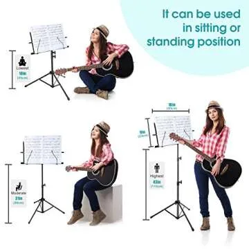 Avenda Music Stand, Portable Folding Music Note Sheet Clip Holder with Carrying Bag