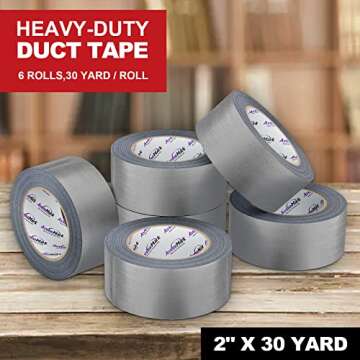 AveneMark 6 Rolls Silver Duct Tape, 2" X 30 Yards, Strong, Flexible, No Residue, Bulk Value Industrial, Professional Grade Multi-Use Duct Tape, All-Weather and Tear by Hand for Projects and Repairs