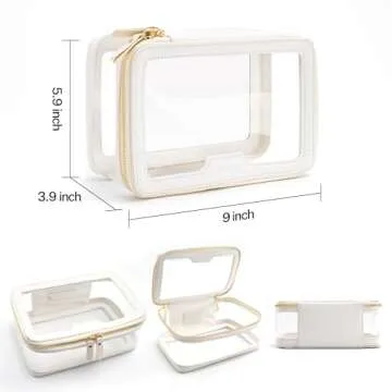 Aveniee Clear Makeup Bag, Travel Toiletry Bag for Women, Large Make up Case Cosmetic Bag with Dual Zipper, Transparent Car Organization Makeup Organizer Pouch for toiletries (Off-White)