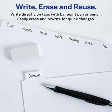 Versatile and tough; sturdy paper dividers have writable tabs that you can erase and reuse