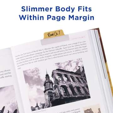 ... Show more Introducing the perfect solution for anyone looking to streamline their organization – our high-quality, repositionable page tabs. These tabs are designed to fit seamlessly within the margins of all types of books, notebooks, and documents, ensuring no interference with your reading or note-taking. With a clear index tab body, you can easily view your bookmarks without any obstruction, making it a breeze to keep track of chapters, separate important documents, and highlight essential notes.