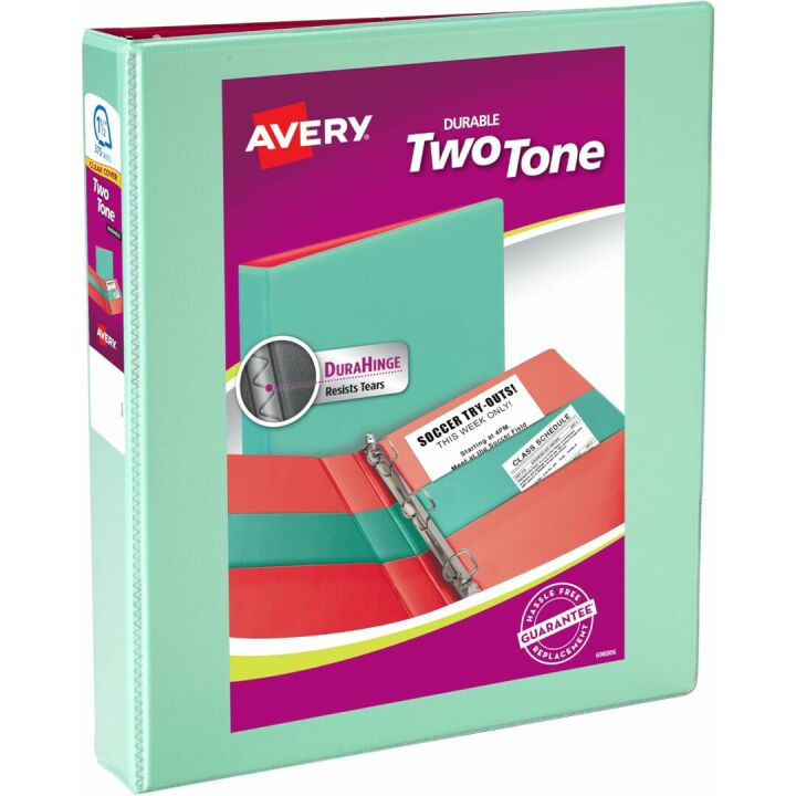 Amazon.com : Avery Two-Tone Durable View 3 Ring Binder, 1.5 Inch Slant Rings, Mint/Coral Binder (17289) : Office Products