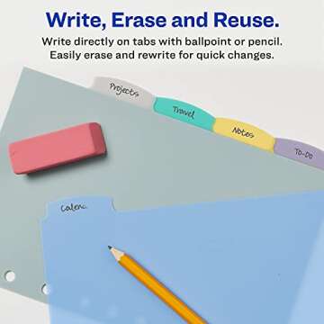 Write directly on tab dividers for mini binders with ballpoint pen or pencil and easily erase and rewrite for quick changes