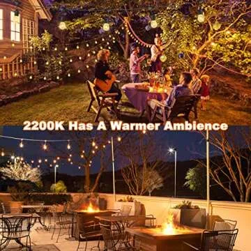 Each string features 16 shatterproof Edison vintage bulbs, one spare bulb included, providing a classic look that complements any outdoor decor. The specially optimized LED technology delivers a soft 3000K warm white light, with a lumens output of 60, ensuring a cozy atmosphere perfect for your patio, backyard, or any special gathering.