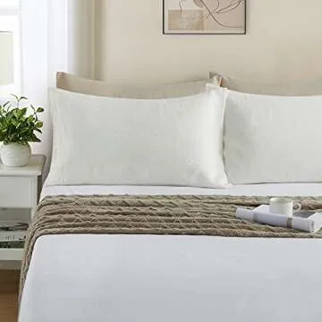 AVEYAL 100% Pure Natural Linen Pillow Cases, Flax Pillowcases in Set of 2 Pack, Hemp Pillow Covers with Envelope Closure, Hypoallergenic and Sweat Release, Queen Size (20x30 inches), Ivory