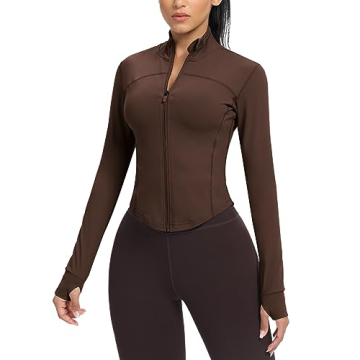 AVGO Women's Cropped Running Jacket - Slim Fit, Thumb Holes, Roasted Brown