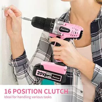 AVID POWER 20V MAX Lithium lon Cordless Drill Set, Power Drill Kit with Battery and Charger, 3/8-Inch Keyless Chuck, Variable Speed, 16 Position and 22pcs Drill Bits (Pink)