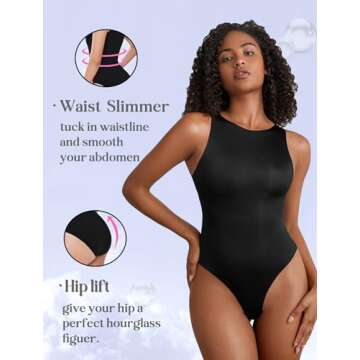 Avidlove Bodysuits for Women Crew Neck Sleeveless Body Suits Snap Closure Double Lined Tank Tops Bodysuit(Black,XL)