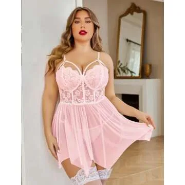 Step into a world of elegance and allure with the Avidlove Lingerie Sets for Women Plus Size Sexy Mesh Lace Babydoll Nightgown. Designed with the modern woman in mind, this exquisite light pink babydoll exudes charm and femininity. Crafted from a super soft and stretchy lace fabric, it promises comfort without compromising on style. The stunning scalloped wireless floral lace cups provide essential support, while the adjustable spaghetti straps allow you to customize the fit, enhancing your...