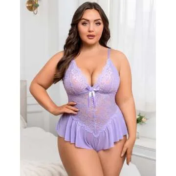 Show moreIntroducing the Avidlove Plus Size Lingerie for Women Sexy Teddy Bodysuit, a stunning addition to your intimate wear collection that embodies elegance and comfort. Made from a luxurious blend of Polyester and Spandex, this beautiful light purple lace chemise is soft to the touch and designed to gently embrace your curves. The exquisite floral lace fabric is not only breathably comfortable but also perfect for close-fitting wear, making it an ideal choice for boudoir shoots or simply enhancing your own nightwear style.