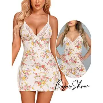 Avidlove Printed Nightgown Baby Doll Nighty for Women Lace Sleepwear for Women Flower L
