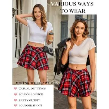 Avidlove Sexy Schoolgirl Costume Pleated Mini Skirt Plaid Short Skirts Lingerie Skirts Red Blue