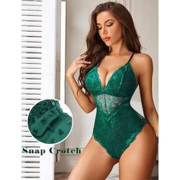 Avidlove Women Deep V Sexy Lace Bodysuit Snap Crotch Teddy Green Lingerie XL