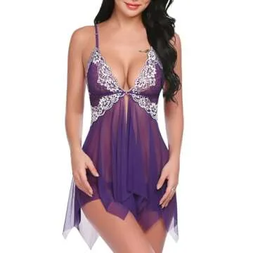 Unveil your sensual side with the Avidlove Women Lingerie Lace Babydoll V Neck Nightwear Strap Chemise in enchanting purple, designed especially for the modern woman who appreciates elegance and allure. This exquisite piece features stunning deep V plunge styling that gracefully showcases your figure while maintaining comfort. Crafted from high-quality materials, the babydoll consists of 95% polyester and 5% acrylic, ensuring a soft, breathable experience against your skin. The open front...