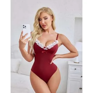 The bodysuit features a v-neckline with lace trim and adjustable shoulder straps for an impeccable fit. Designed thoughtfully, the cups are non-see-through, offering you the freedom to wear it out as a fashionable bodysuit. Plus, the bottom of the bodysuit has a convenient snap crotch to make quick changes a breeze.
