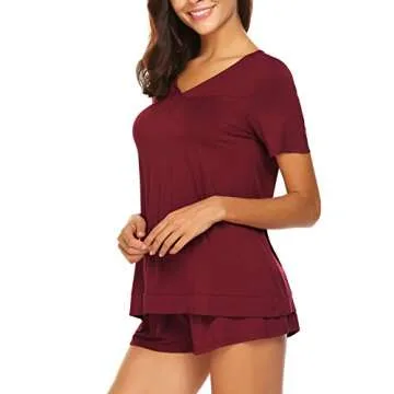 Show moreExperience ultimate comfort and style with the Avidlove Women's Shorts Pajama Set, your new favorite short sleeve sleepwear perfect for leisurely nights and warm summer days. Made from a breathable blend of 95% Rayon and 5% Spandex, this pajama set envelops you in a soft embrace, allowing you to lounge or sleep with ease. The V-neck top combined with matching pajama shorts makes for a chic yet casual look, suitable even for surprise visits from guests.