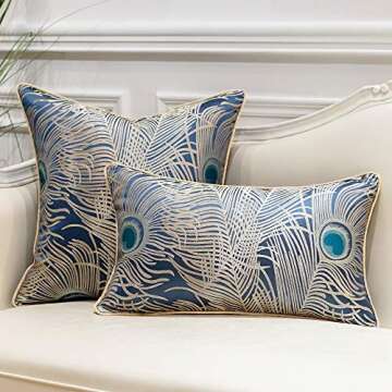 Avigers 12 x 20 Inches Light Blue Silver Peacock Feathers Cushion Cases Luxury Throw Pillow Covers Home Decorative Pillows for Couch Sofa Living Room Bedroom Cars 30 x 50cm