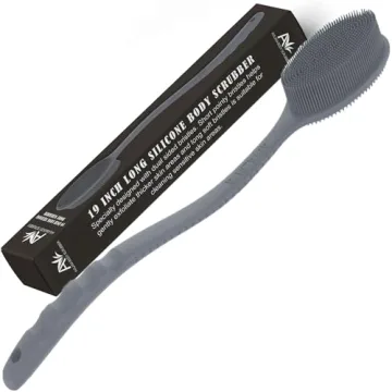 Show more Introducing the Avilana Long Handle Silicone Body Scrubber, your new bathing companion that redefines your self-care routine! Measuring an impressive 19 inches long, this innovative back and body shower brush allows you to easily reach every corner of your body, ensuring a thorough cleanse without strain. Its unique design features soft silicone bristles on one side for a gentle, soothing scrub, while the other side presents exfoliating bristles, giving you the versatility to choose between a relaxing touch or an invigorating wash. Perfect for those tough-to-reach areas, it transforms your routine into a pampering experience.