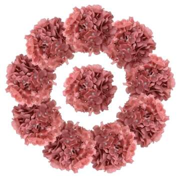 AVIVIHO Dusty Rose Hydrangea Silk Flowers Heads Pack of 10 Dusty Rose Fullness Hydrangea Flowers Artificial with Stems for Wedding Home Party Shop Baby Shower Decoration