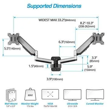 AVLT Dual Extended 13"-32" Monitor Wall Mount fits Two Flat/Curved Computer Monitor Full Motion Height Swivel Tilt Rotation Adjustable Monitor Arm - VESA/Cable Management