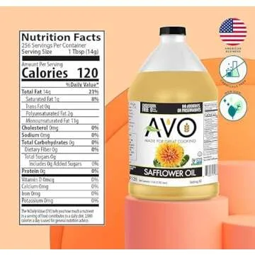 Show moreIntroducing the AVO Naturally Processed NON-GMO High Oleic Safflower Oil – a premium choice for health-conscious consumers looking for a versatile cooking oil that boasts remarkable health benefits. Sourced and produced in the USA, this safflower oil is gently processed to retain its nutritional integrity, making it perfect for high-heat cooking methods such as frying, roasting, and sautéing. With a generous 1-gallon packaging, it not only meets your cooking needs but also serves as a reliable staple in your kitchen that promotes a healthy diet.