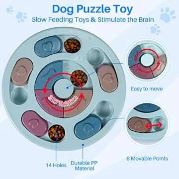 Show more This versatile Dog Puzzle Feeder is designed for the clever canines and curious kitties in your life. Crafted to challenge their minds while promoting healthy eating habits, this interactive feeding toy comes with an innovative design featuring 8 movable points and 14 holes that allow pets to search for hidden treats. By sliding the sliders, your furry friend can engage in a stimulating activity that extends their feeding time by 5 to 10 times, enhancing their mental agility and keeping them active. Perfect for dogs and cats alike, this toy not only makes mealtime entertaining but also curbs pet depression by keeping them mentally stimulated.