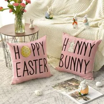 Show moreIntroducing the AVOIN colorlife Happy Easter Hunny Bunny Throw Pillow Covers, a delightful addition to your seasonal décor! Made with premium 100% polyester, these throw pillow covers are designed to be robust and high-quality, ensuring they withstand outdoor use without issues like bleeding, fading, or fraying. Perfectly sized at 18 x 18 inches, each cover comes in a set of four, featuring charming Easter-themed designs with adorable bunny and egg motifs in vibrant pink hues. This makes them an eye-catching and cozy accent for your home during Easter and beyond.