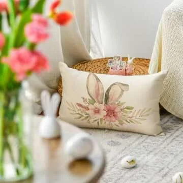 Show more Transform your home decor with the delightful AVOIN colorlife Happy Easter Throw Pillow Cover. Measuring at a perfect size of 12 x 20 inches, this charming pillow cover features a whimsical rabbit and spring flower design that embodies the joy and freshness of the Easter season. Crafted meticulously from 100% durable machine-washable polyester, this pillow cover ensures no fading, bleeding, or fraying, making it suitable for both indoor and outdoor settings. Its high-quality material not only guarantees a stunning visual appeal but also promises long-lasting use, allowing you to enjoy its festive charm year after year.