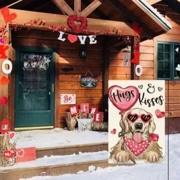 AVOIN colorlife Valentine's Day Dog Garden Flag 12x18 Inch Golden Retriever Hugs Kisses Double Sided, Anniversary Wedding Yard Outdoor Flag