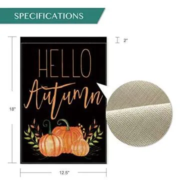 Show moreWelcome the cozy vibes of autumn with the AVOIN Hello Autumn Pumpkins Garden Flag, a charming and vibrant addition to your outdoor decor. Crafted from high-quality burlap-like material, this flag showcases a beautiful pumpkin design that perfectly captures the spirit of fall. Measuring 12.5 x 18 inches, it’s double-sided, allowing you to display its stunning artwork from any angle. The combination of rich black and vivid orange colors ensures that your garden becomes a focal point during the fall season, drawing compliments from neighbors and friends alike.