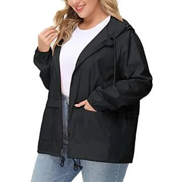 Avoogue Plus Size Lightweight Raincoat Climbing Jackets Women Waterproof Rain Jacket Packable Windbreaker Black 4XL