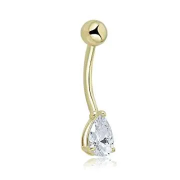 AVORA 10K Yellow Gold Simulated Diamond CZ Pear-shaped Belly Button Ring Body Jewelry (14 Gauge)