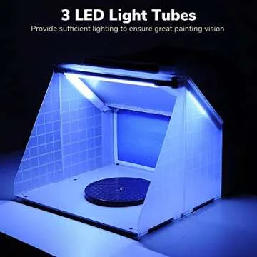 AW Airbrush Spray Booth Kit with Dual Action Airbrush LED Light 0.3mm Hose Painting