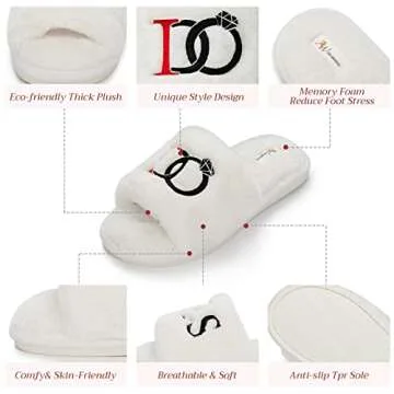 AW BRIDAL Engagement Gift Bride Slippers YES&I DO - Fuzzy Open Toe Home Slippers for Women