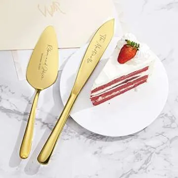 AW BRIDAL Personalized Wedding Cake Knife and Server Set, Gold Cake Cutting Set Gift for Wedding Bridal Shower Pie Sever Pizza Knife//DK2201CPP23//