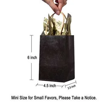 AWELL Mini Size Black Paper Bag with Handle Party Favours Bag 6x4.5x2.5 inch for Wedding Birthday Baby Shower Recycled Bag, Pack of 24