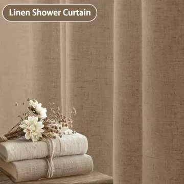 Awellife Linen Shower Curtain Beige Shower Curtains for Bathroom Natural Cloth Cotton Fabric Liner Khaki 72 x 72 Inch