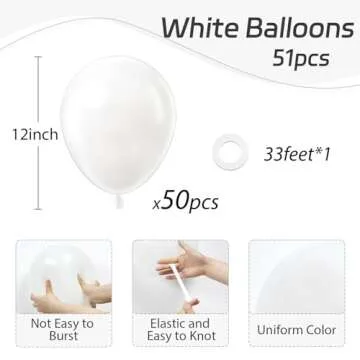 Awenztech White Balloons 12 inch, White Latex Balloons 50pcs Party Balloons for Engagement Bachelorette Bridal Shower Wedding Party Birthday Decorations
