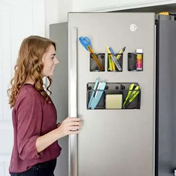 Awesome Office Supplies Black Magnetic Pencil Holder (4-pack) - Strong Magnet Wire Mesh Storage Basket Organizer Organizes Pens, Pencils, Markers for Locker Accessories, Fridge, Cubicle Desk, Offices