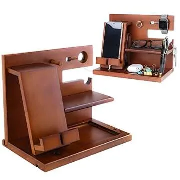 awofer Wood Phone Docking Station Nightstand Organizer for Men - Key Holder Wallet Stand iWatch Organizer Ring Hanging - Gadgets Gifts for Husband Boyfriend Dad Son Birthday Anniversary Fathers Day