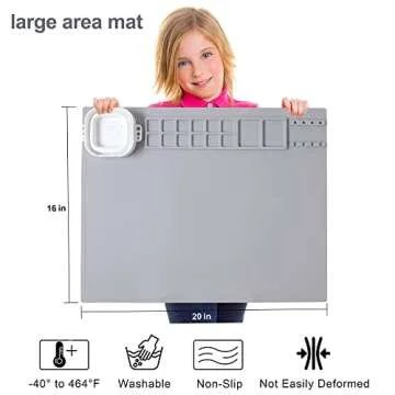 AWOKE Silicone Painting Mat - 20"X16" Silicone Art Mat with 1 Water Cup for Kids - Silcone Craft Mat has12 Color Dividers - 2 Paint Dividers (Grey)