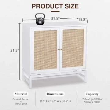 Designed with your convenience in mind, this wooden buffet sideboard features adjustable shelves within, allowing you to customize your storage space to fit your items perfectly. The sturdy metal frame enhances durability, ensuring your cabinet stands the test of time, and each detailed rattan panel combines beauty with practicality. With dimensions of 15.8 inches deep, 31.5 inches wide, and 31.5 inches high, it’s perfectly sized for both compact and spacious rooms.