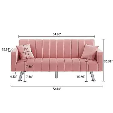AWQM Sofa Bed, Upholstered Convertible Sofa Bed with 2 Pillows, Modern Sleeper Sofa Couch with Wooden Frame and Metal Legs, Comfortable Velvet Sofa Suitable for Living Room Bedroom Office (Pink)