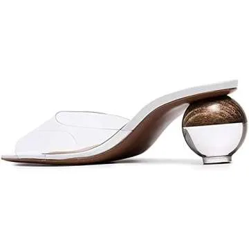 Axellion Mule Slipper for Women, Abnormal Heel Sandals Round Toe Mule Shoes Spherical Sandal Slides for Party Evening White Size 8 US