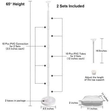 AXHJ Balloon Column Kit 2 Set, 65 inch Height Balloon Stand with Base,Pole, Balloon Rings,Dot Glue,Tying Tool,Flower Clip,Balloon Pump,Balloon Stand Kit for Birthday Wedding Party Decorations