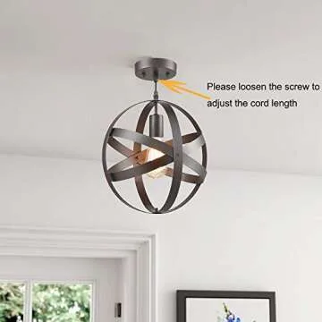 AXILAND Truelite Industrial Metal Spherical Pendant Displays Changeable Hanging Lighting Fixture
