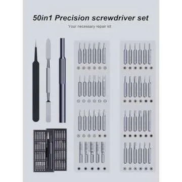 Show more Transform your repair experience with the AXTH 25-in-1 Precision Screwdriver Set, your ultimate companion for tackling a variety of tasks with ease. This thoughtfully designed kit includes 47 different bits crafted from premium Bearing Steel, ensuring durability and performance that you can trust. The sleek, compact case houses everything you need, featuring a magnetic tip that holds tiny screws securely in place, making it incredibly handy for intricate projects.