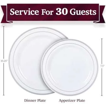 Why You Will Love This Product:Imagine hosting your friends and family, savoring delicious meals without the hassle of messy cleanup. Aya's Silver Rimmed Plastic Plates allow you to embrace this lifestyle fully, providing you with stress-free hosting while still impressing your guests with your elegant taste. Whether it’s a festive holiday dinner or an elegant wedding reception, these plates bring a level of sophistication that's often missing from regular disposable options. You’ll not only appreciate the convenience, but your guests will admire the thoughtfulness you’ve put into every detail of your gathering.
